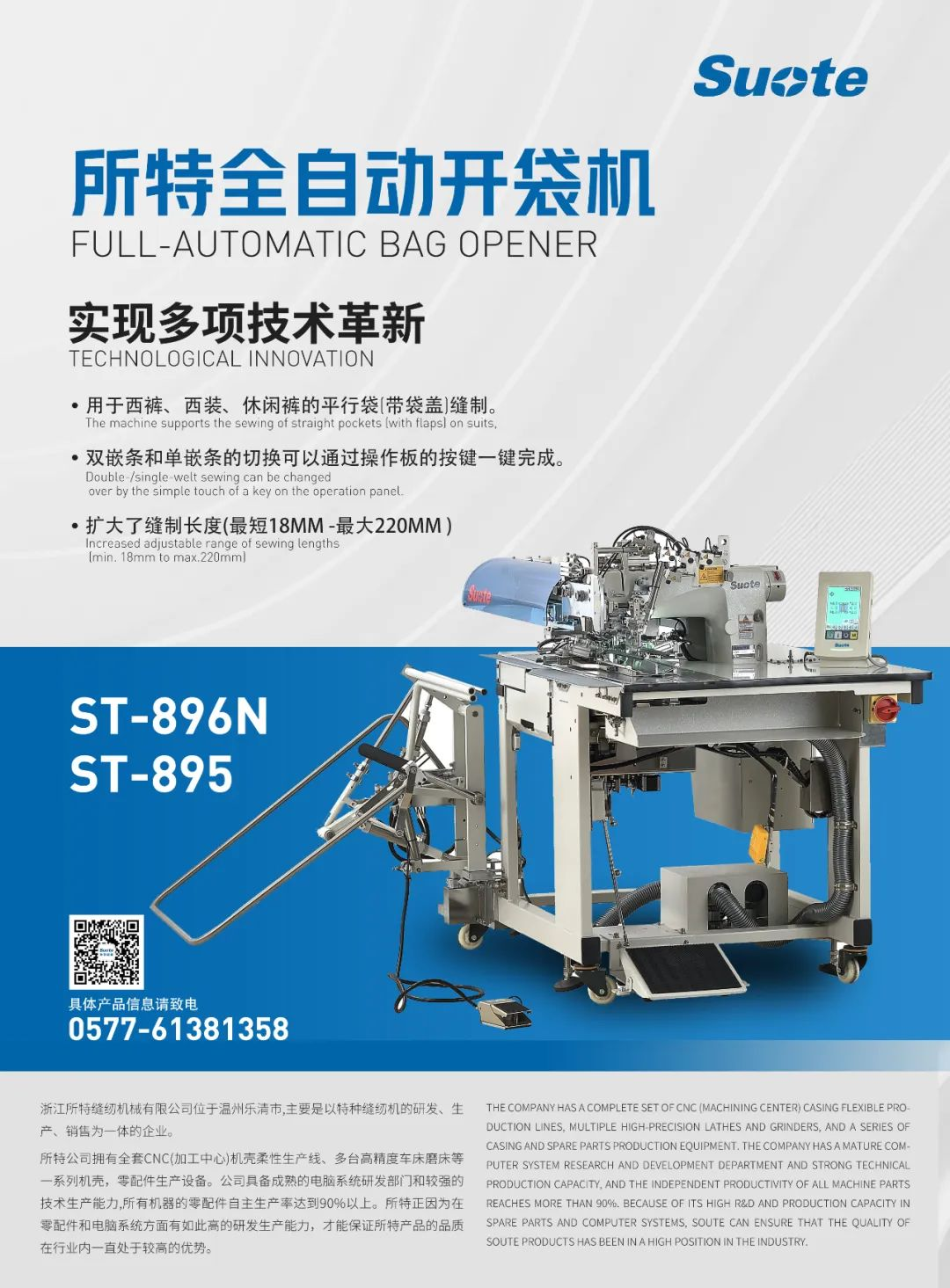 全自動開袋機895、896N問世銷售,為服裝企業提供物美價廉的高品質產品。