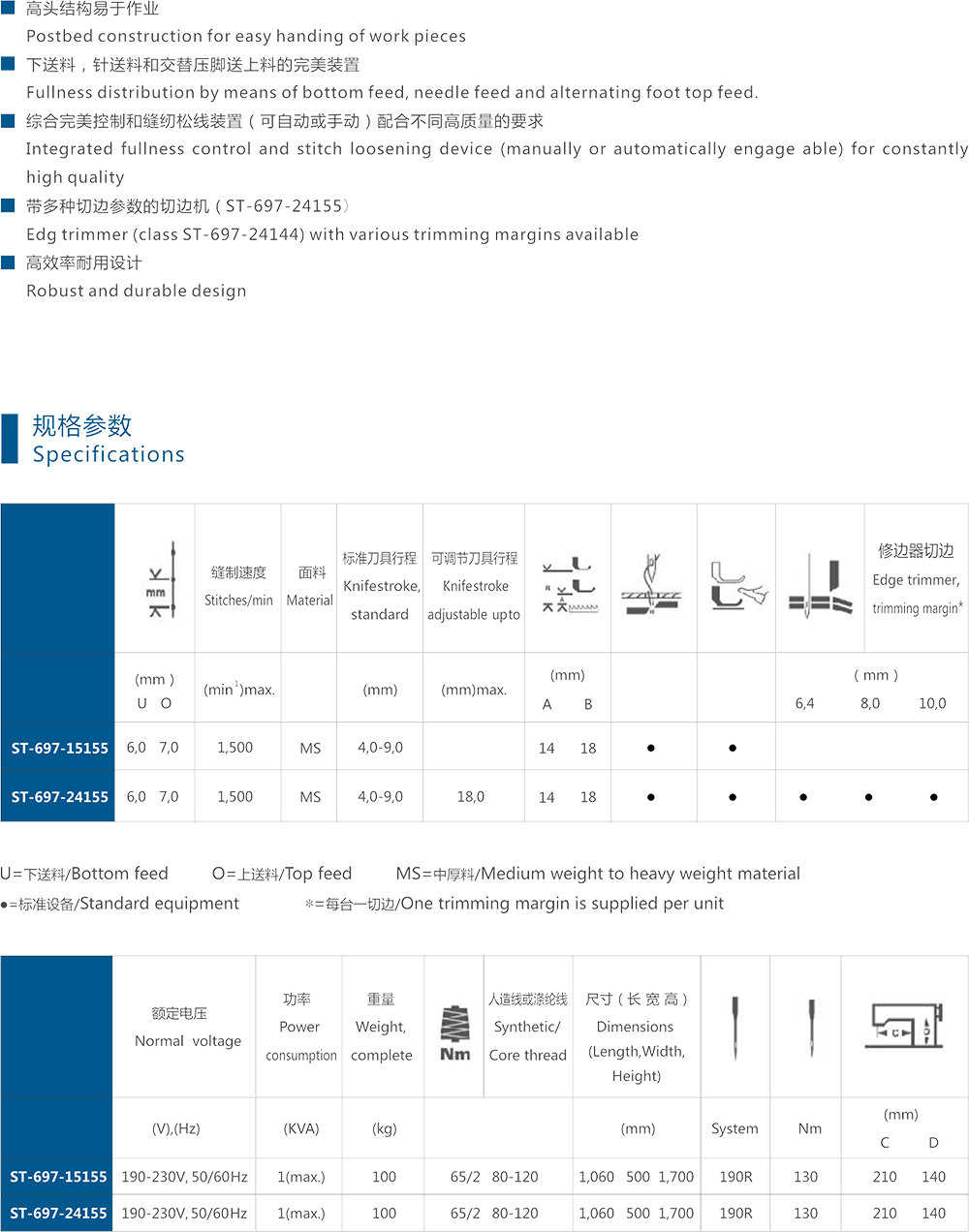 綜合完美控制和縫紉松線裝置(可自動或手動)配合不同高質量的要求