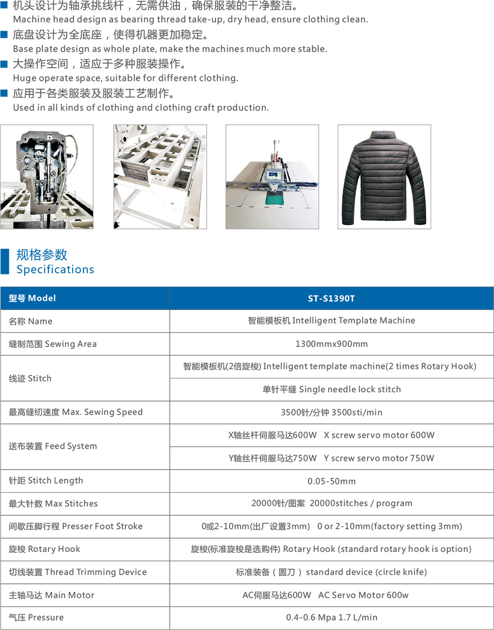 大操作空間,適應(yīng)于多種服裝操作。